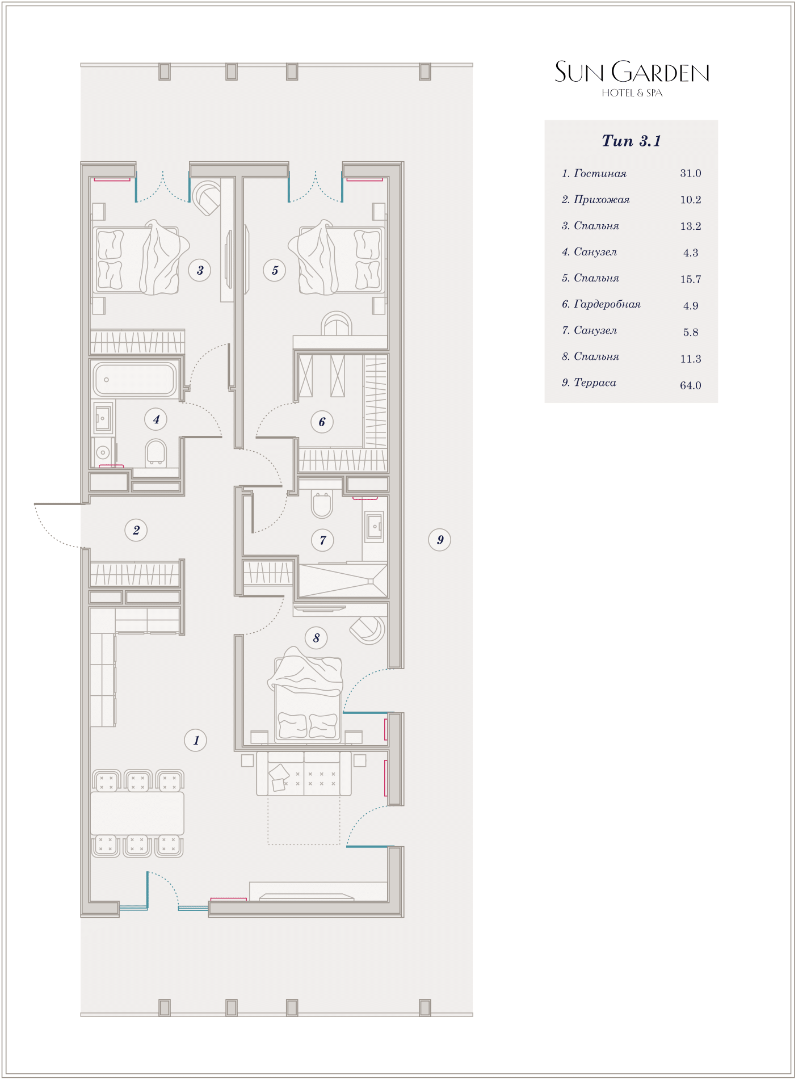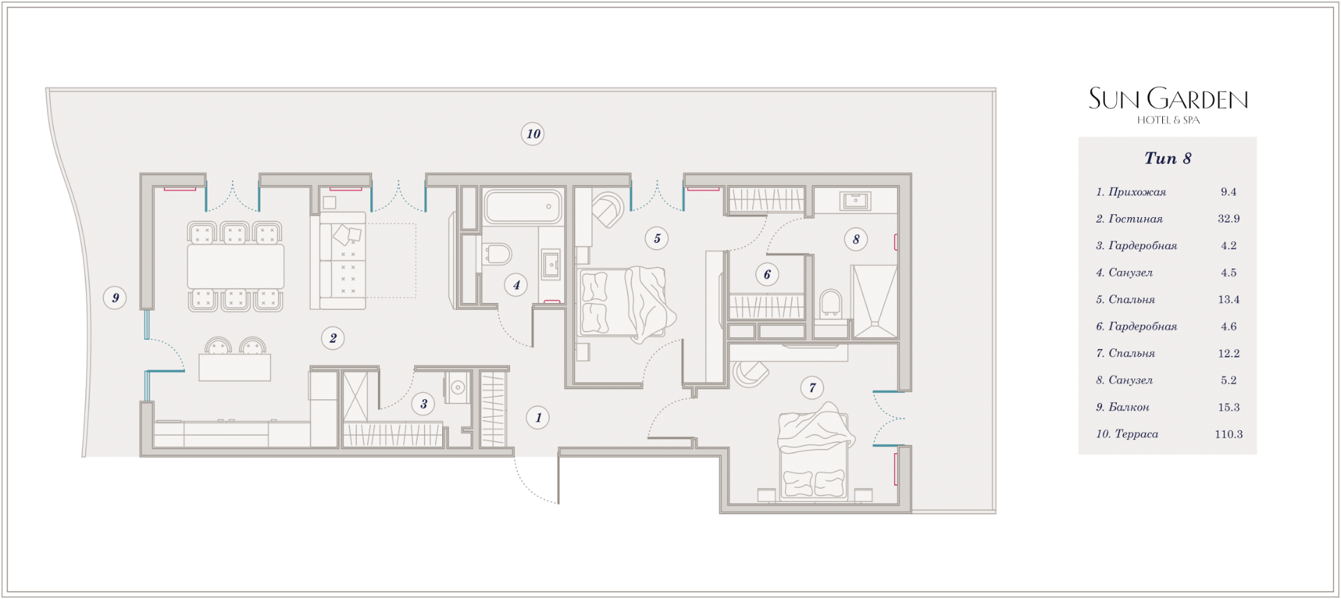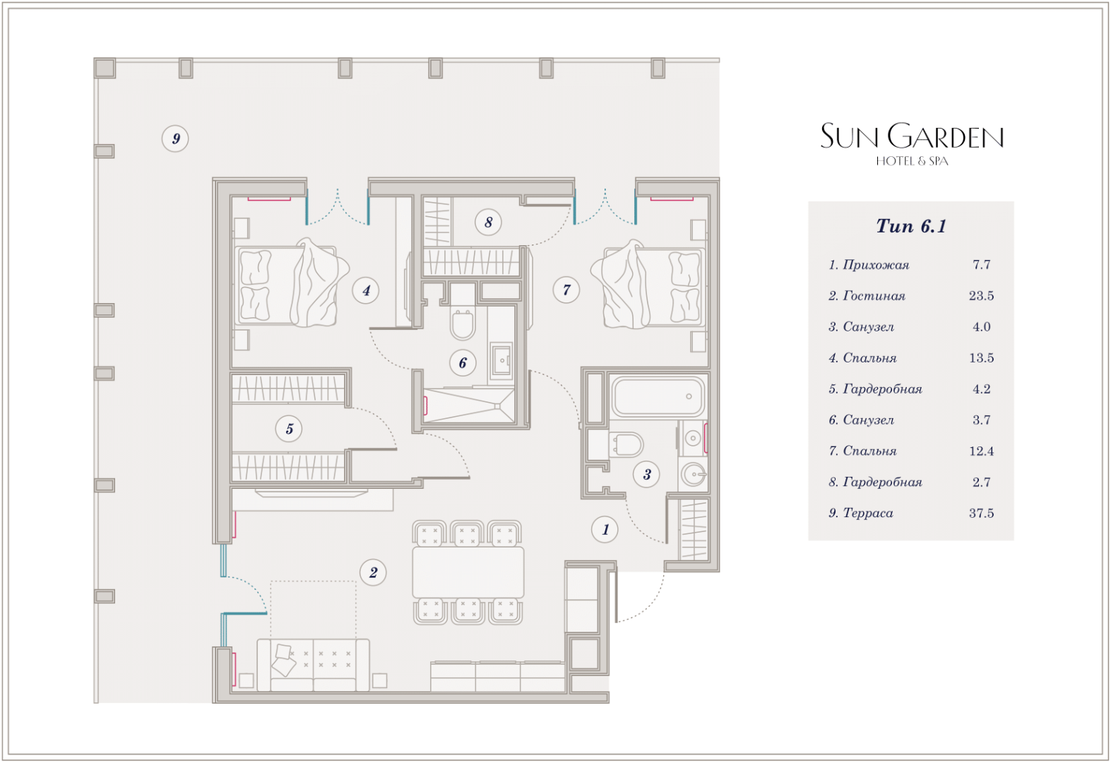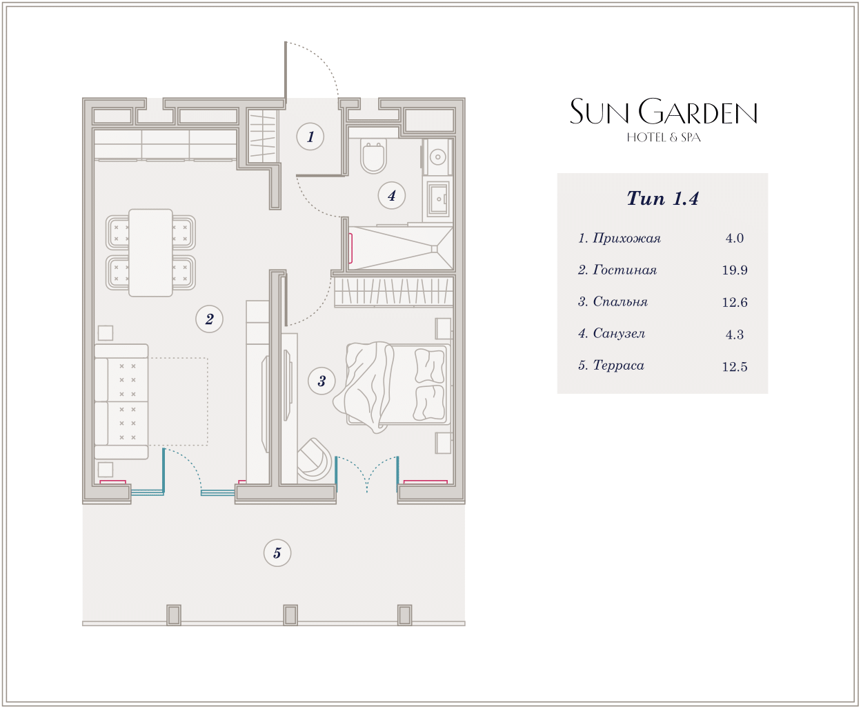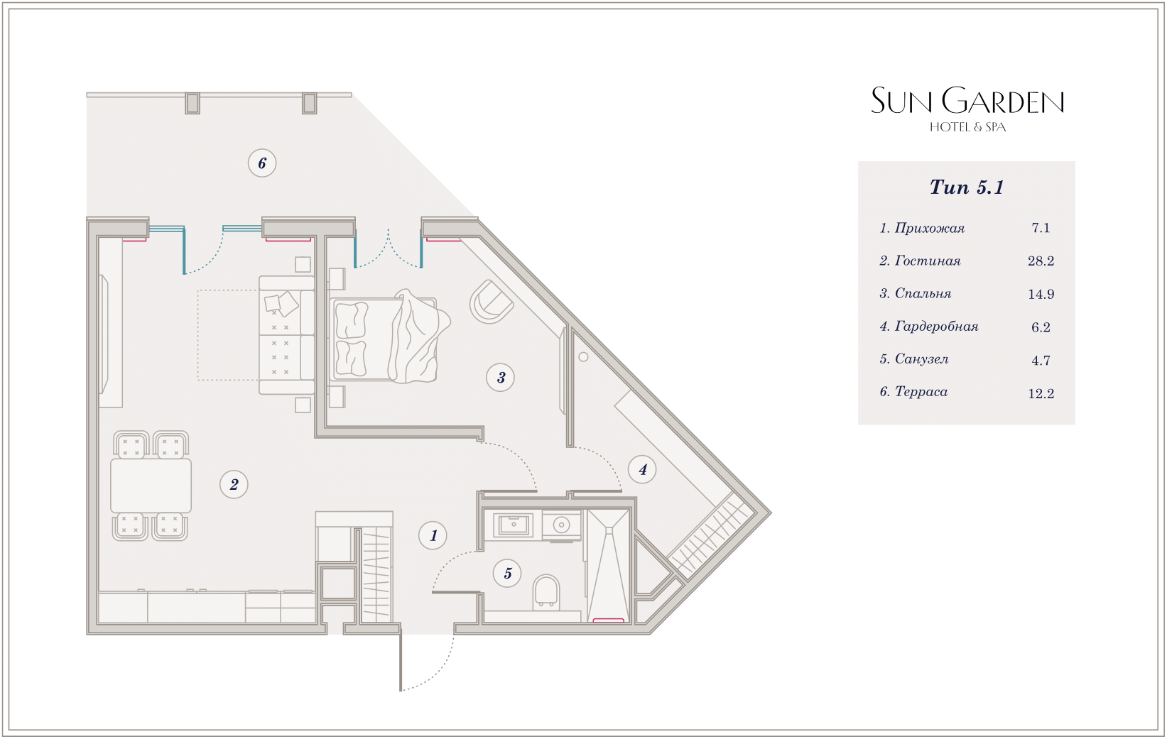 • Приобретая номер в Sun Garden Hotel & Spa, вы инвестируете в будущее, ведь это не только комфортное место для жизни и отдыха, но и перспективное вложение с потенциалом роста стоимости.