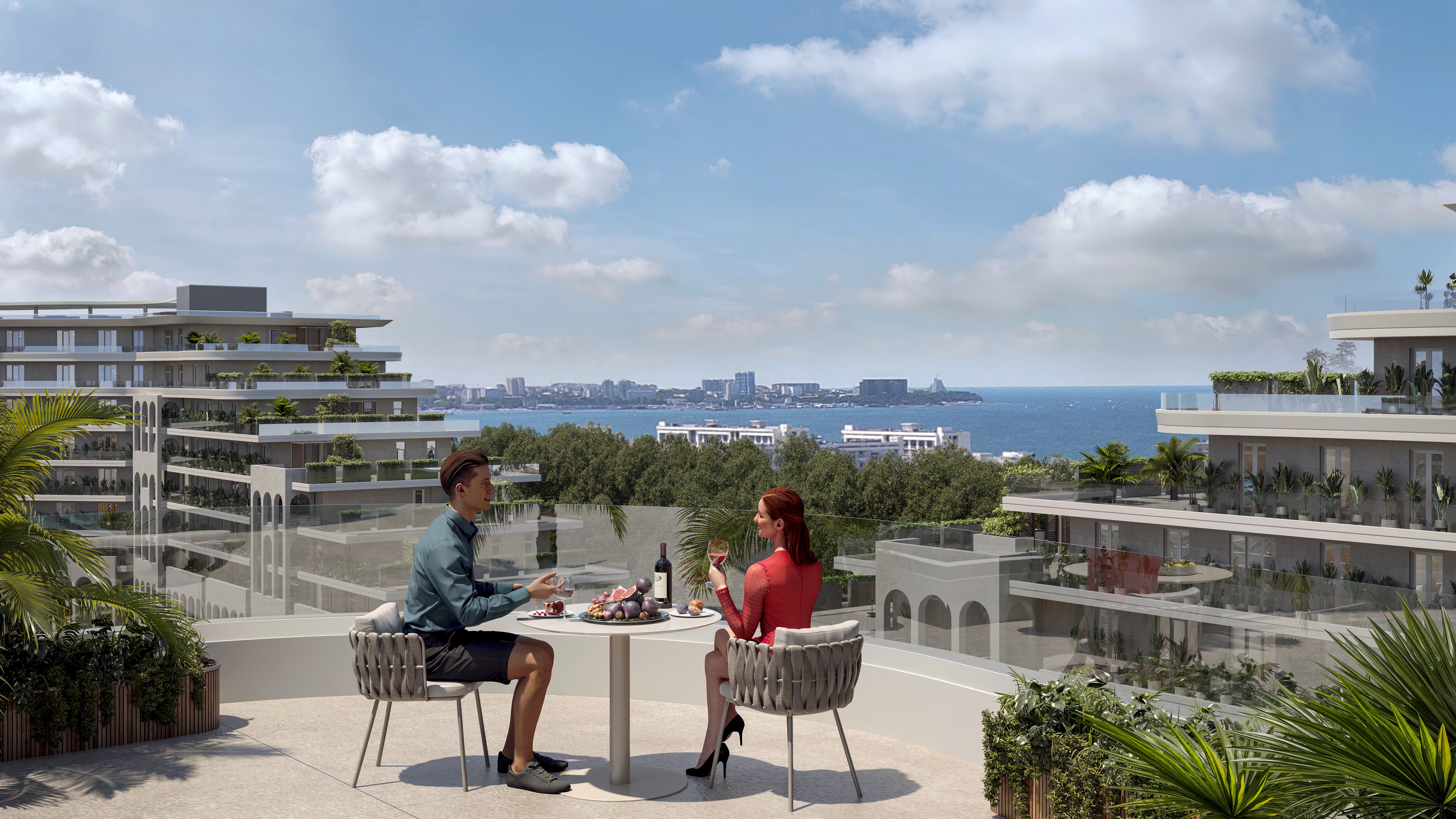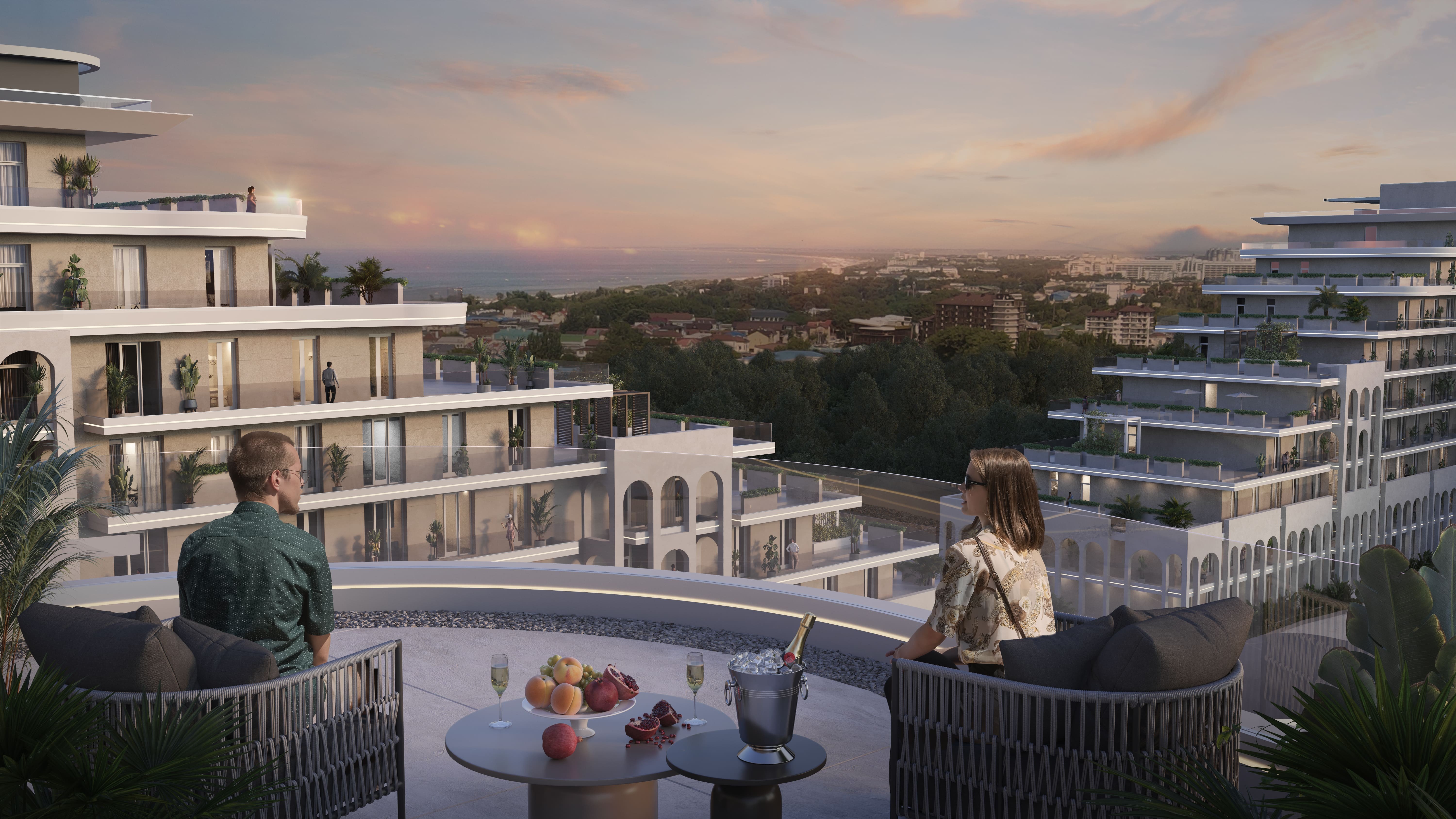 • Днем с террас и балконов открывается впечатляющий вид на море, а ночью мягкая подсветка фасадов окутывает атмосферой уюта.