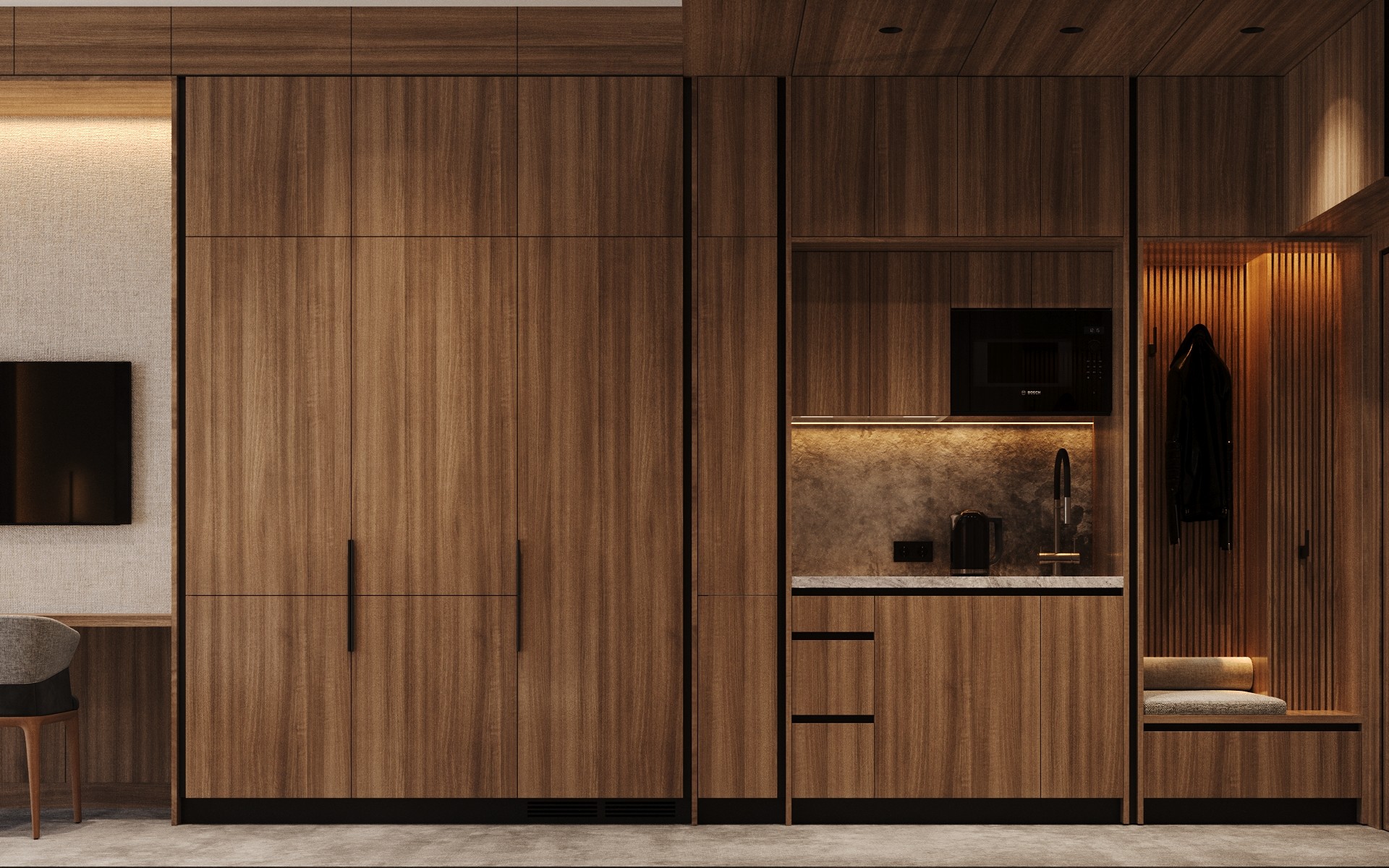 Вам не нужно задумываться об устройстве быта. Каждый номер в нашем отеле полностью оснащен — от дизайнерской мебели и современной техники до собственного халата и посуды.