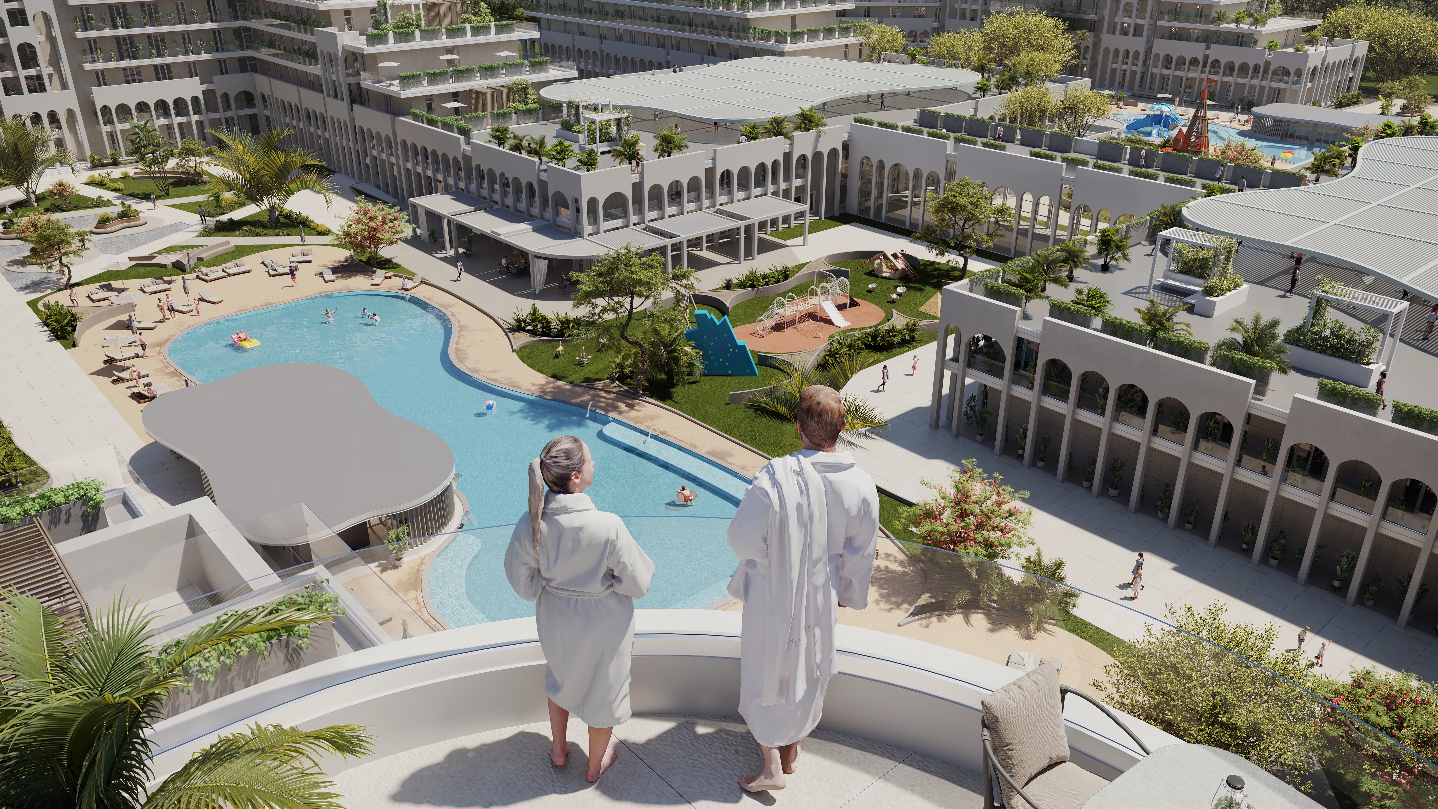 • Поддерживайте тонус в фитнес-зале и проходите релакс-процедуры в SPA-центре, заряжайтесь свежестью в кристально чистой воде и пробуйте тропические коктейли в летних барах у бассейнов. Не переживайте о детях — здесь для них открыт детский клуб, площадки для игр и водные аттракционы, а за безопасностью проследят заботливые сотрудники.